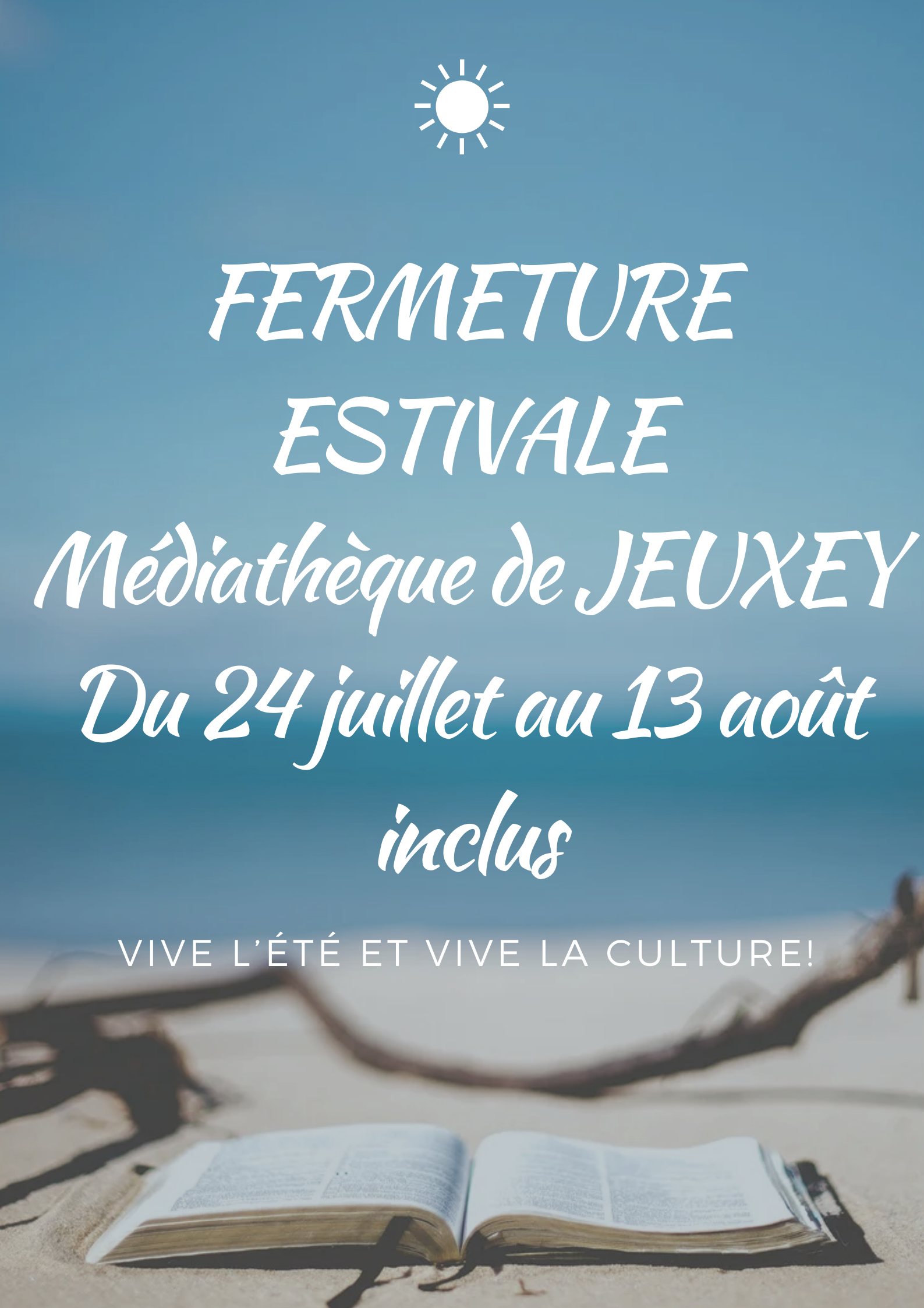 Je prendrai mes congés d’été le vendredi 19 juillet à 18h30 pour une durée de trois semaines, la bibliothèque sera par conséquent fermée jusqu’au 13 août inclus.